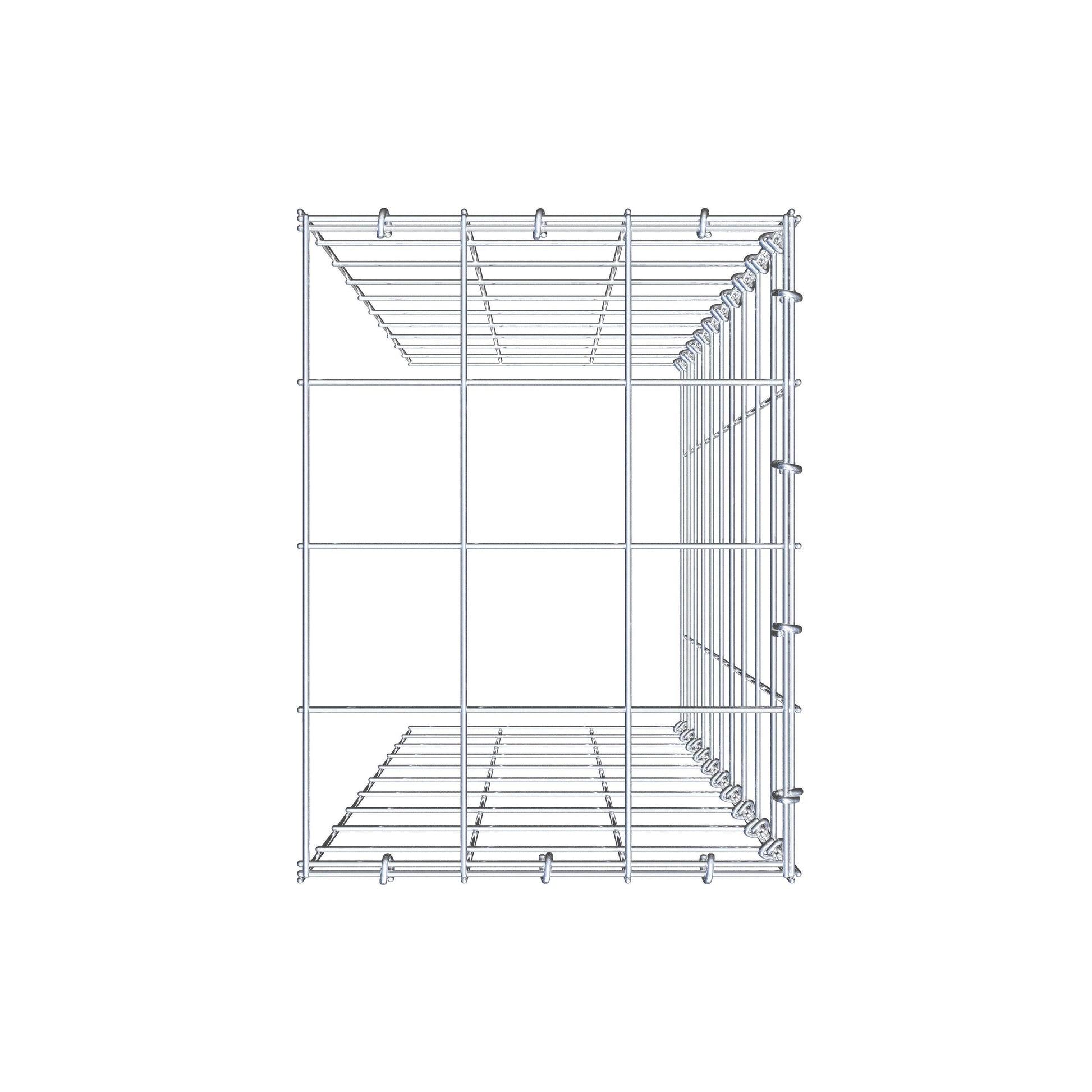 - Hinweis: kein eigenes Bodengitter und kein eigenes Stirngitter – die Verbindung erfolgt über das Deckelgitter und den Verschluss der unteren Gabione sowie den Verschluss der seitlichen Gabione.