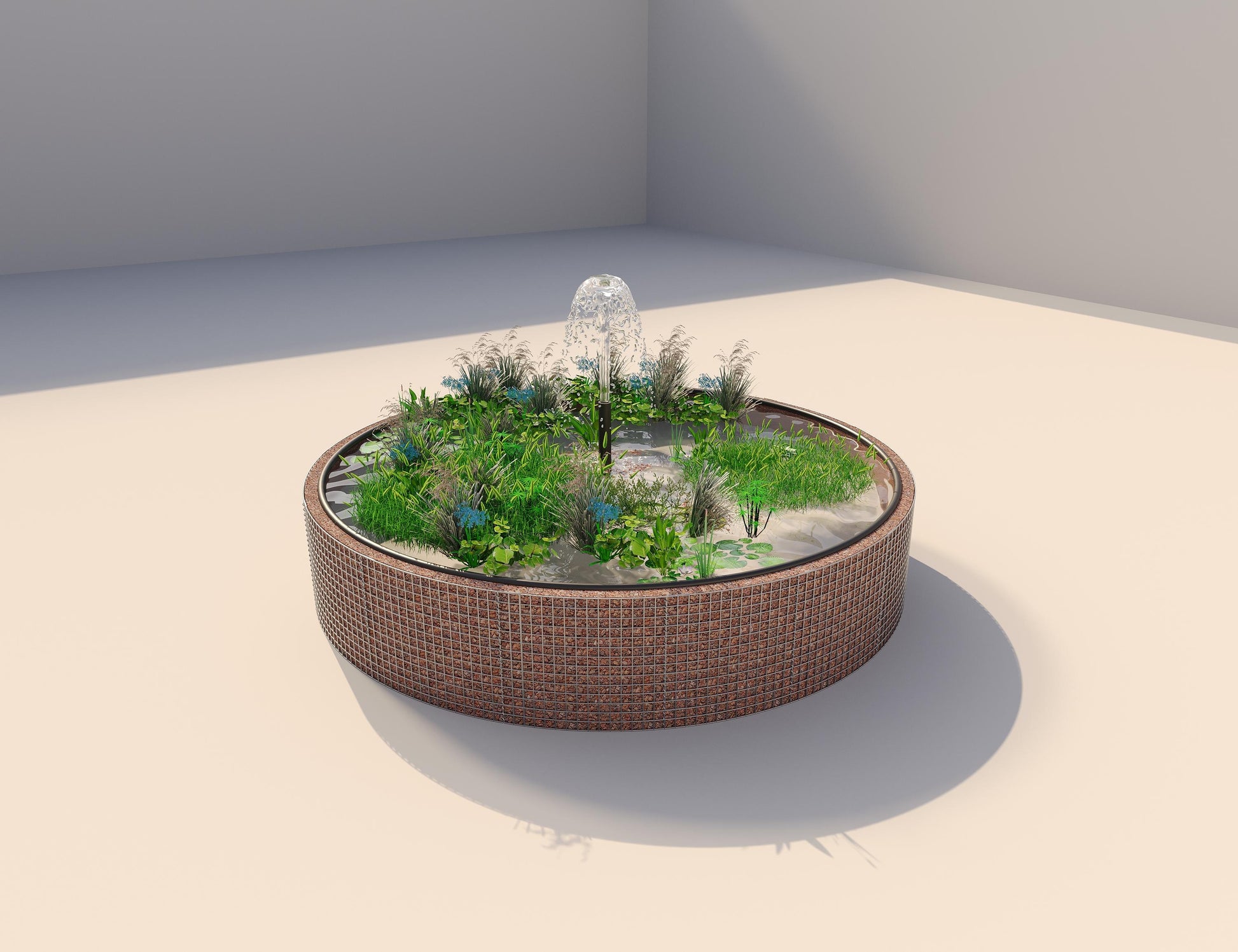 Verleih Deinem Garten, Deiner Terrasse oder Deinem Balkon eine moderne und stilvolle Note mit unserem Gabionen Hochteich. Das runde Design entsteht durch die Verbindung stabiler Gabionengitter – ein zeitloser Blickfang, der sich nahtlos in jede Umgebung einfügt.