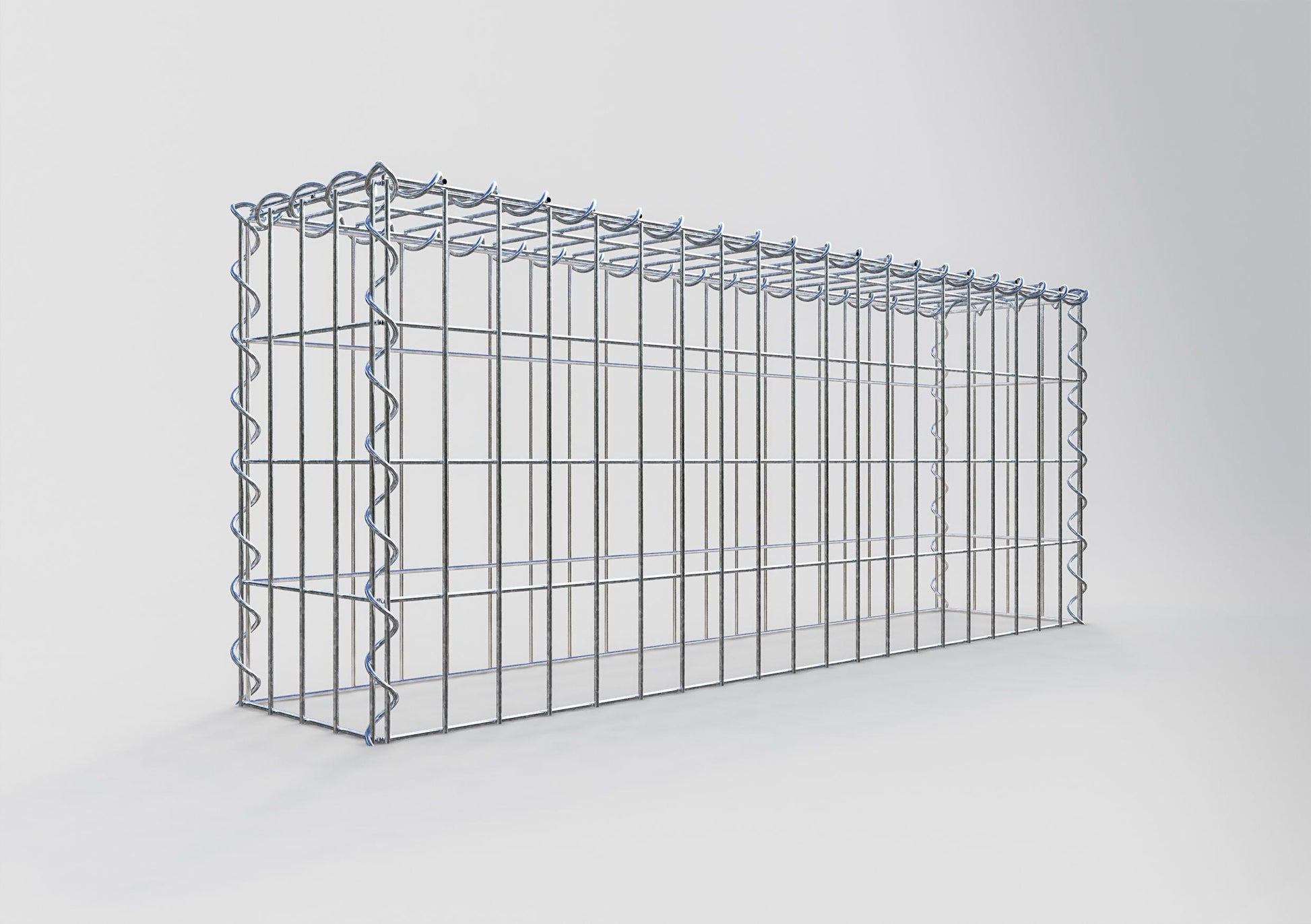 Relie les grilles sans aucun outil - rapidement, facilement et en toute sécurité. Les spirales sont la manière la moins compliquée de construire des gabions stables à partir de nos grillages. Le fil de fer de 4 mm d'épaisseur est plié en forme de spirale et est torsadé à travers les grillages au niveau des bords. Tourne la spirale le long du bord pour que les grillages soient uniformément et solidement reliés entre eux.