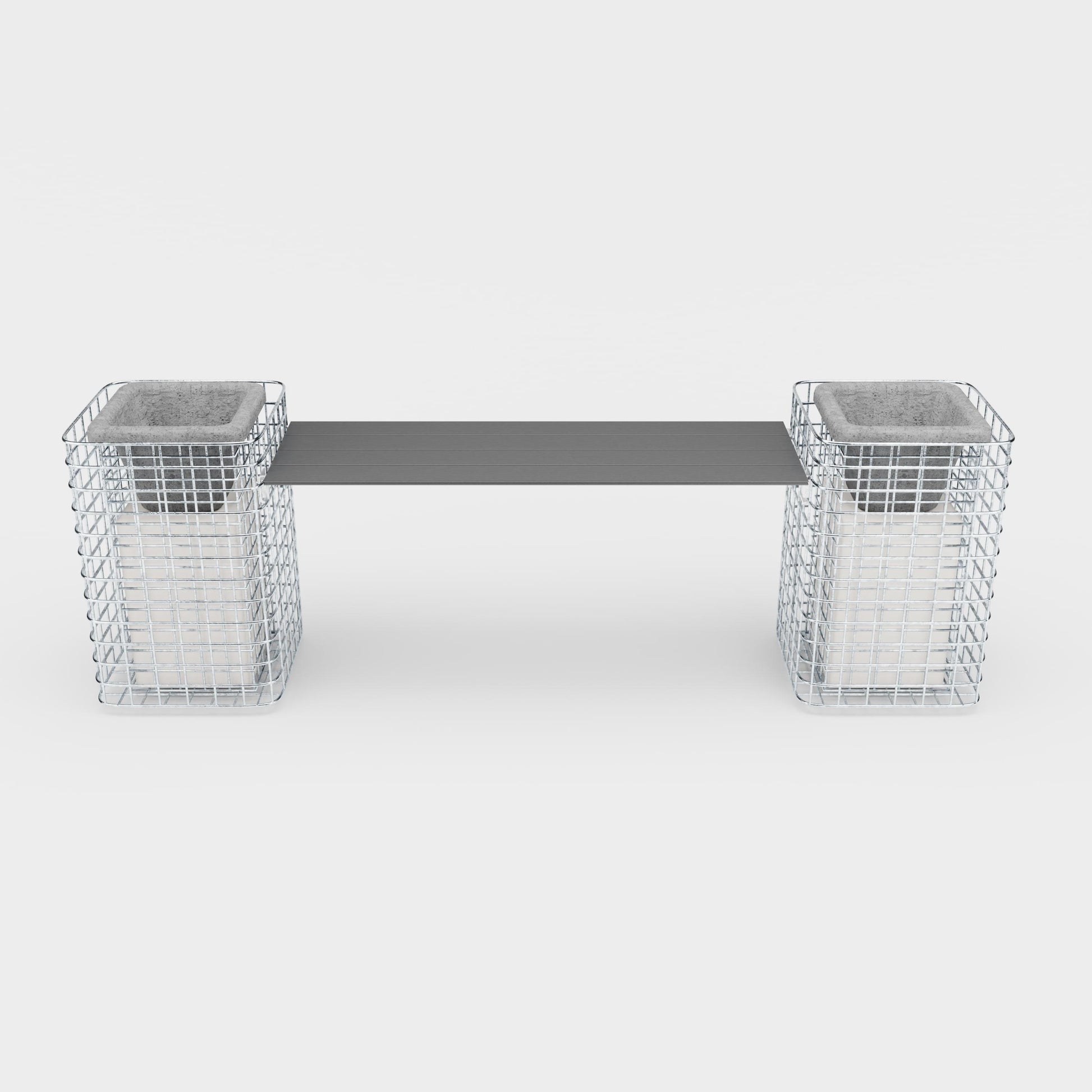Vous souhaitez plus d'espace pour les jambes ? Nos bancs peuvent également être montés entre deux corbeilles.