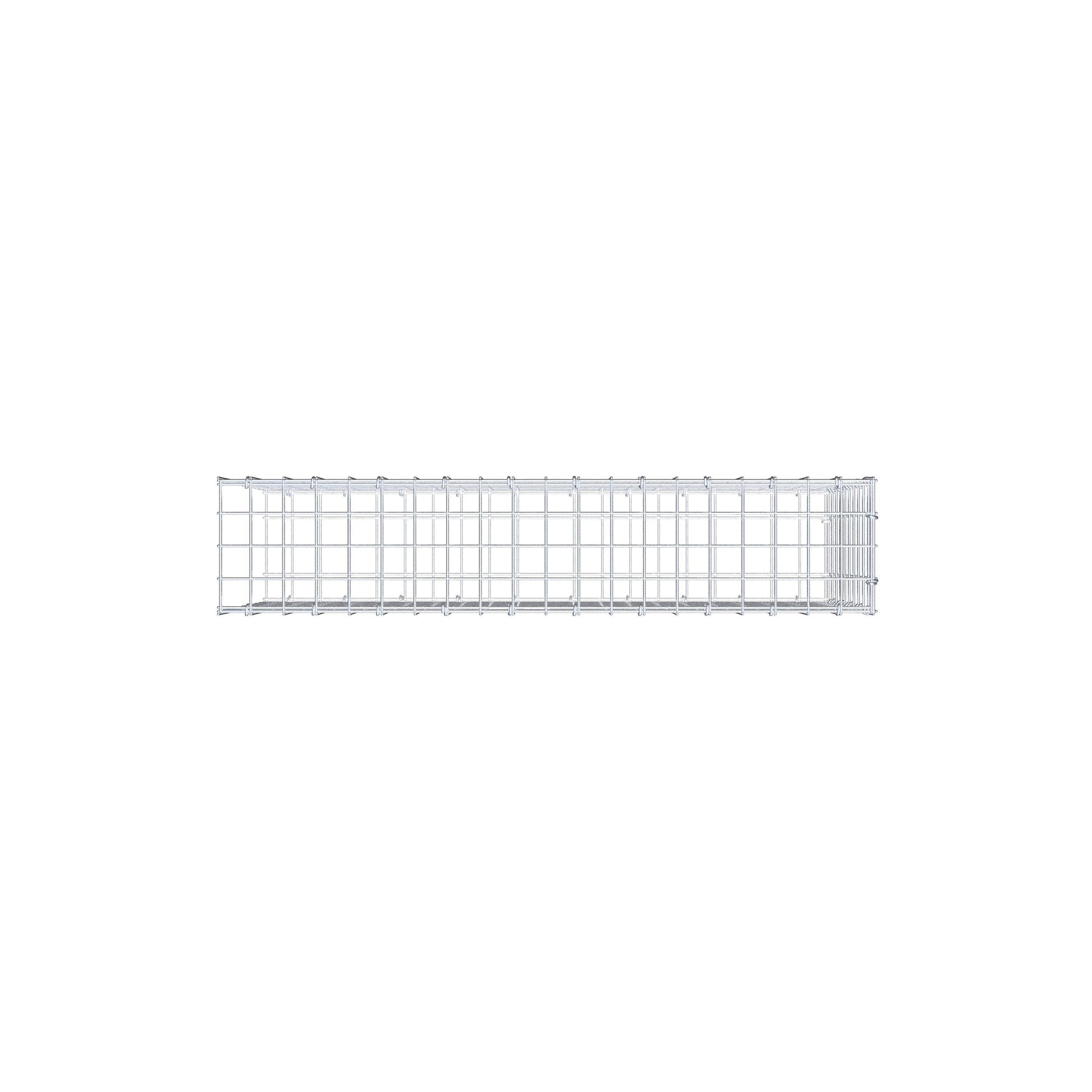 Bei dieser Gabione fehlt ein Stirngitter. Das ermöglicht Ihrer Gabione in die Länge zu wachsen. Bitte beachten Sie, dass die