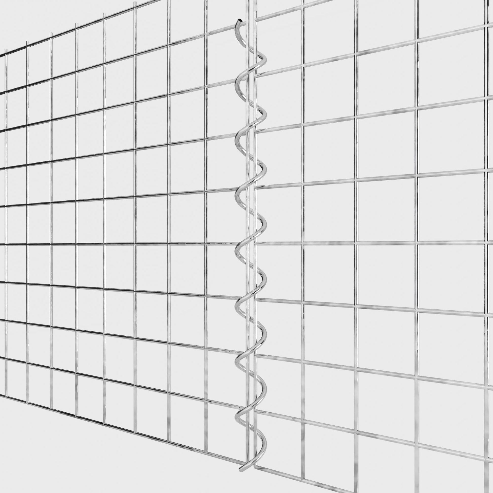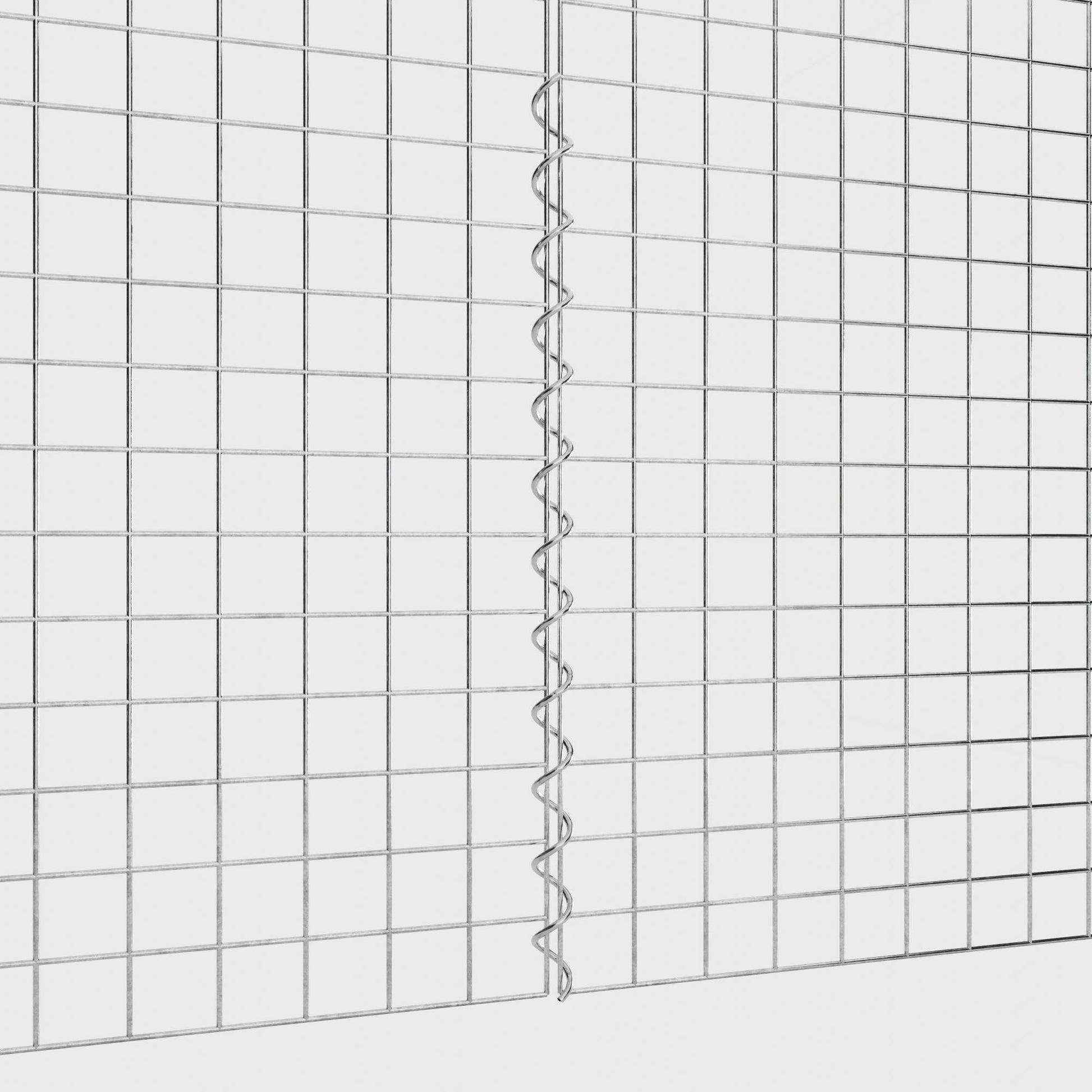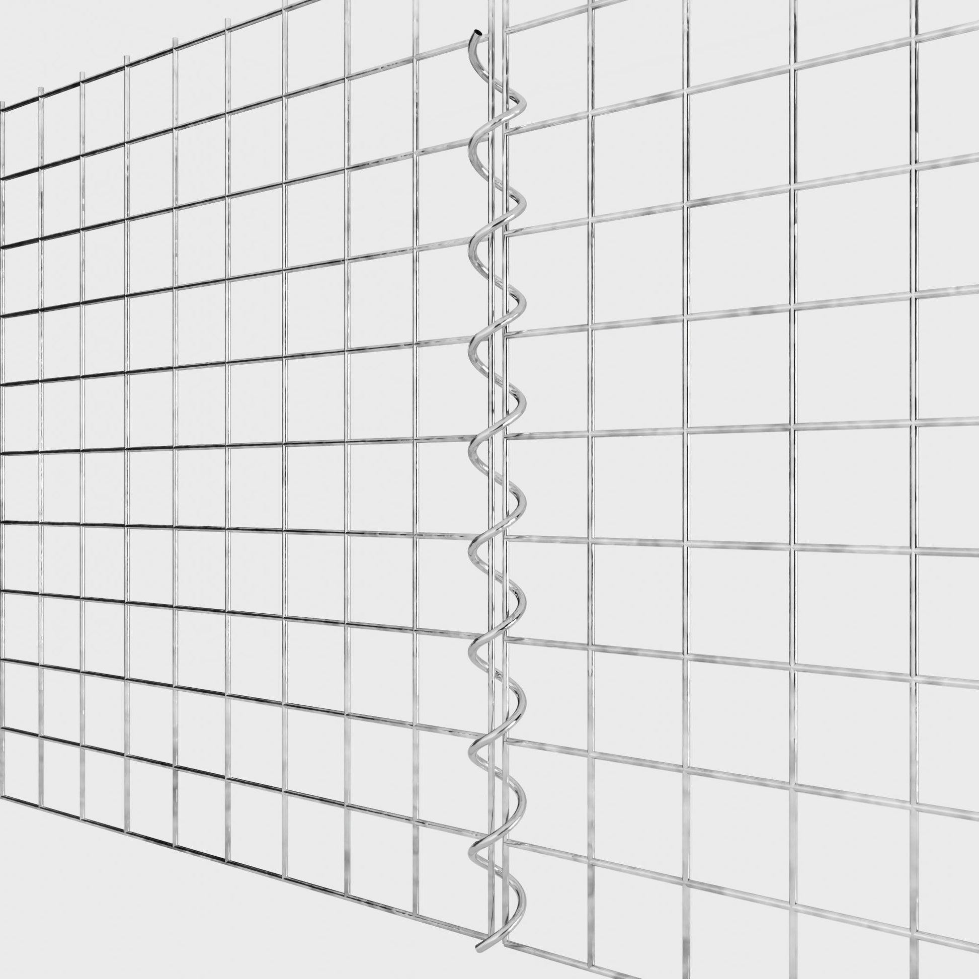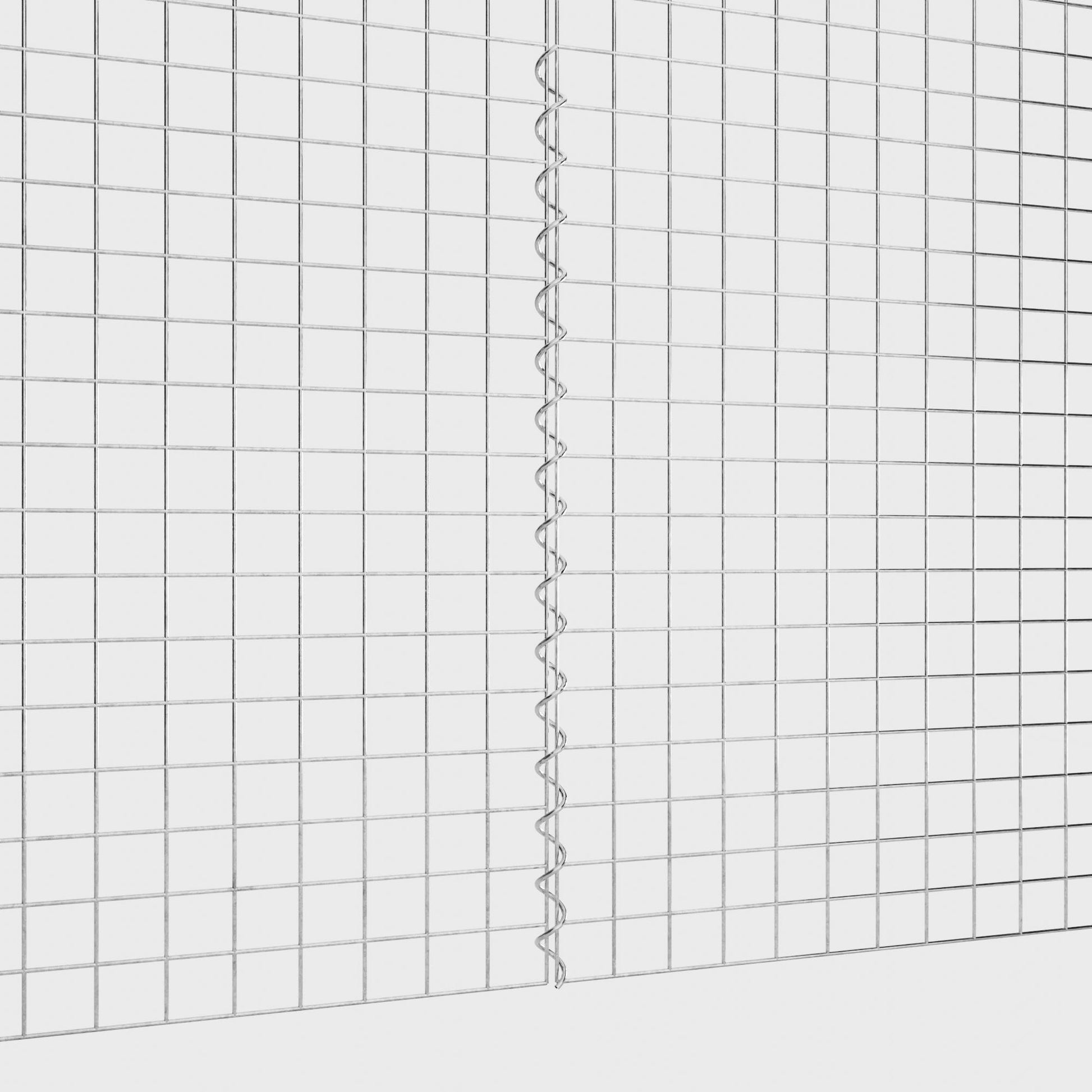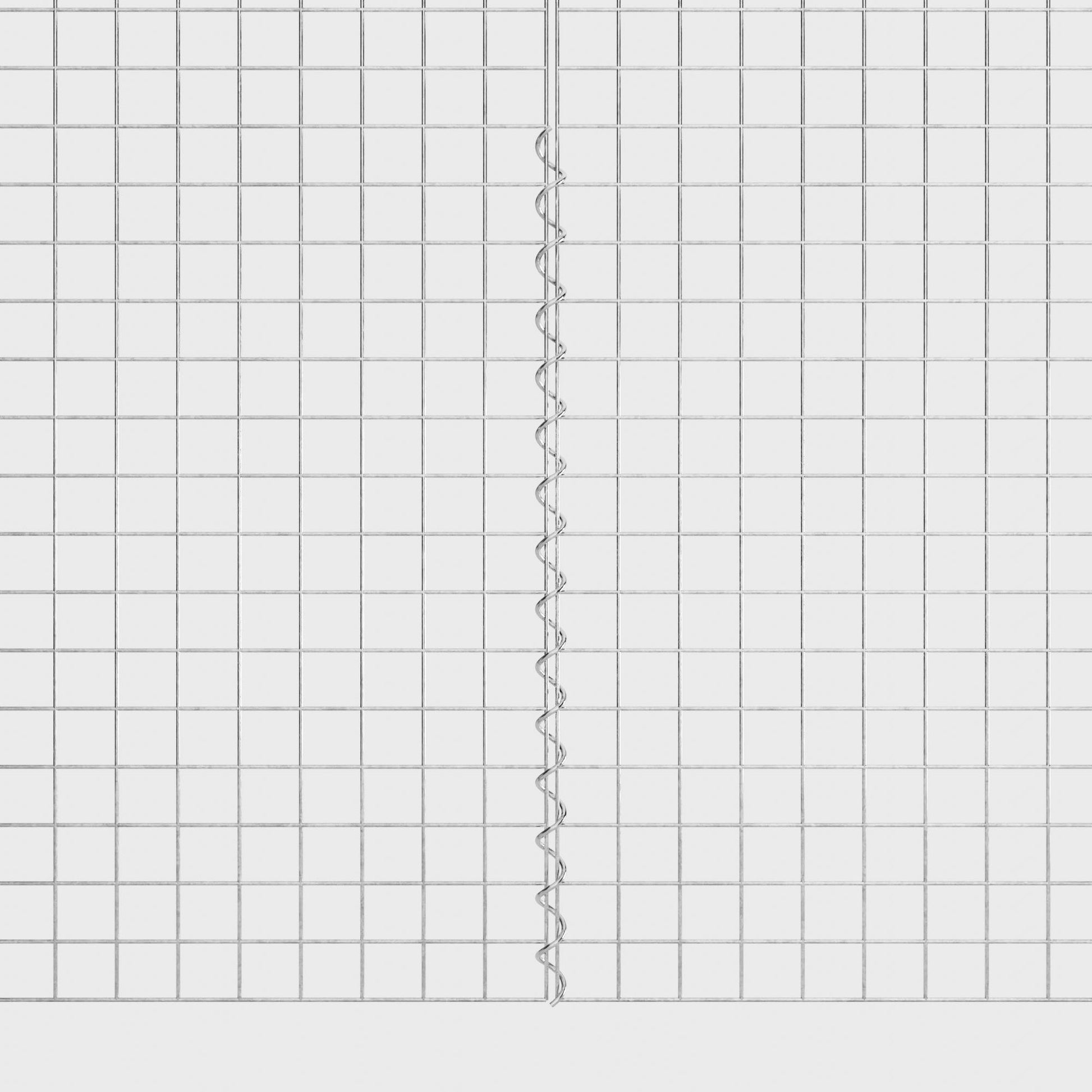 De spiralen zijn gemaakt van 4 mm dik gegalvaniseerd draad en worden eenvoudig in de randen van de gaaspanelen geschroefd. Dit zorgt voor een stabiele verbinding die zowel functioneel als visueel aantrekkelijk is. Dankzij de strakke schroefverbinding grijpen de gaasmatten precies in elkaar en vormen ze een sterke, duurzame eenheid - ideaal voor schanskorven, verhoogde bedden, pilaren of tuinmeubilair.