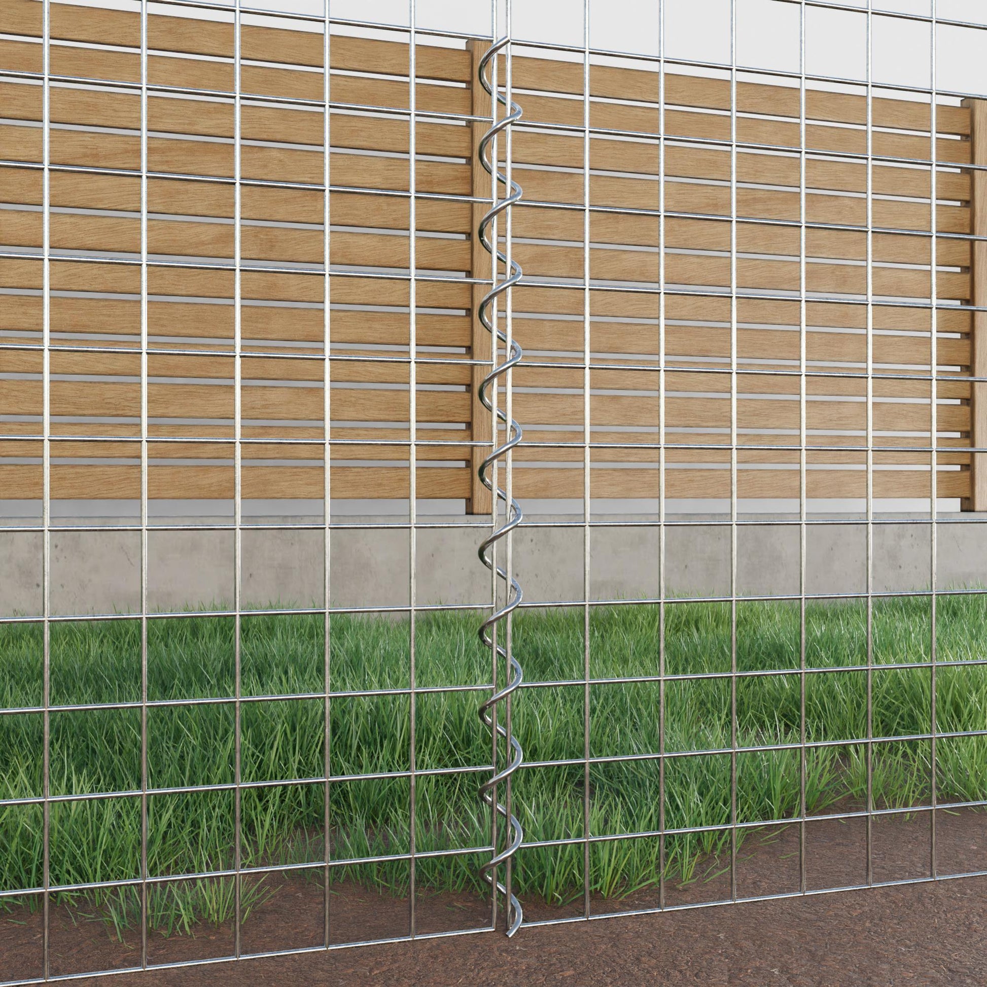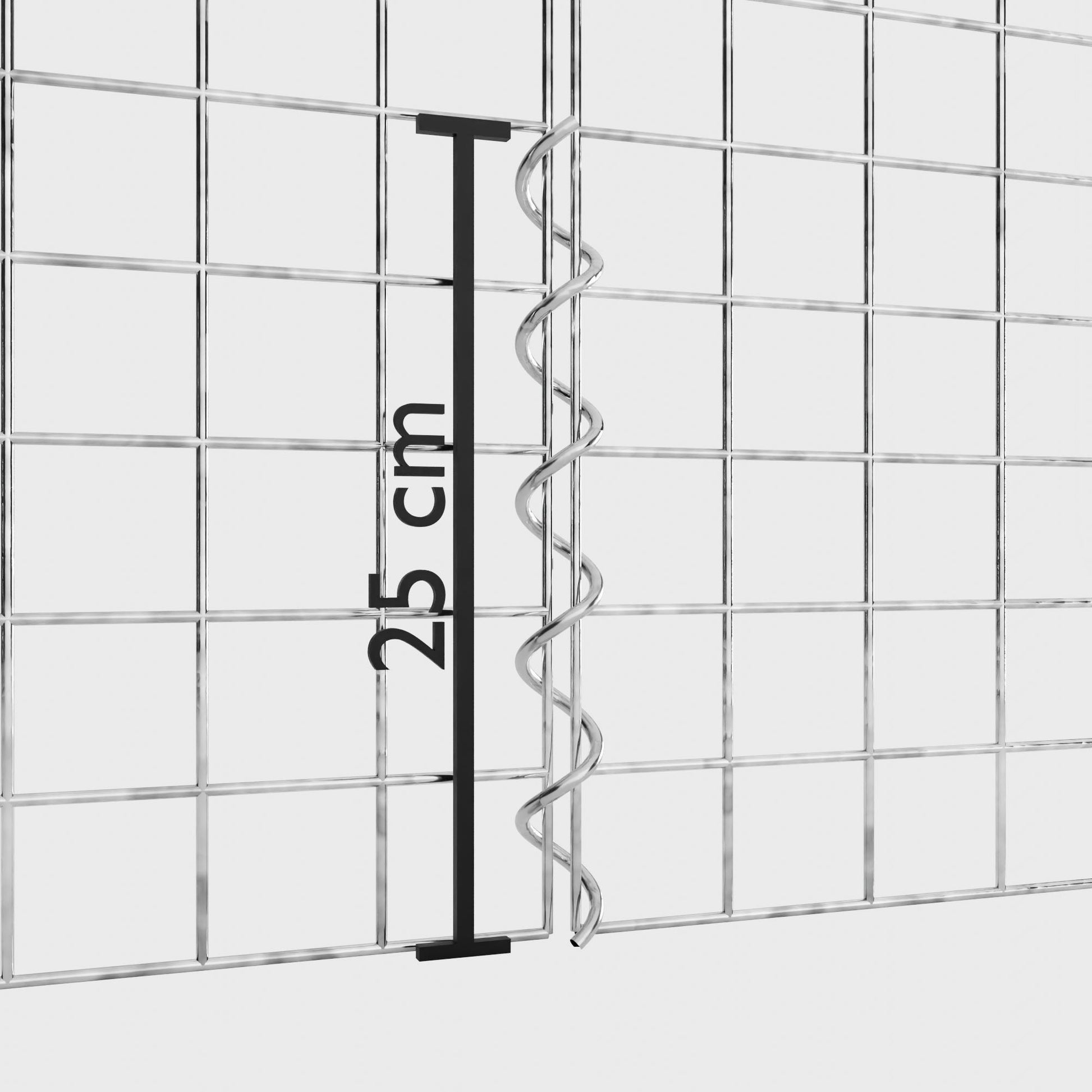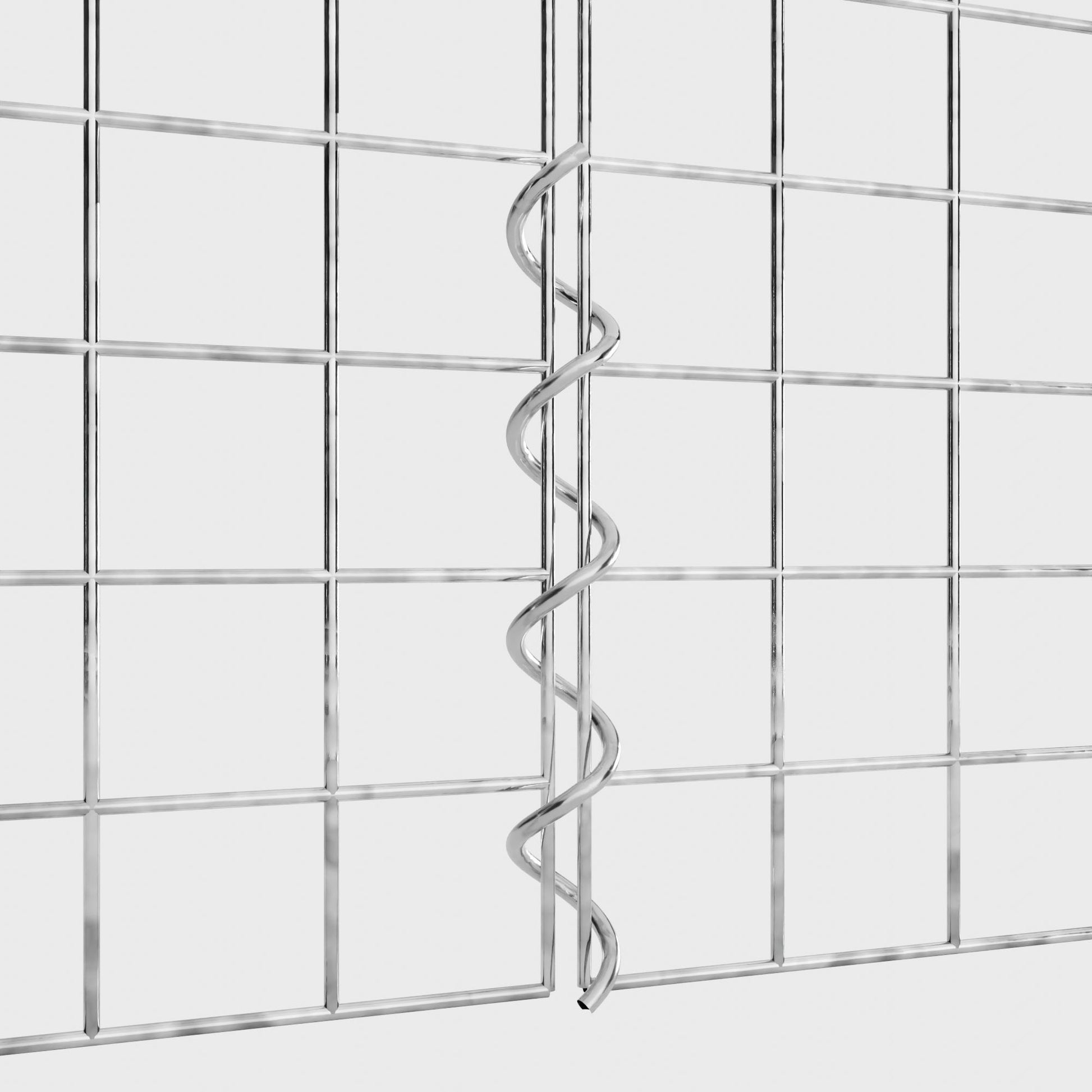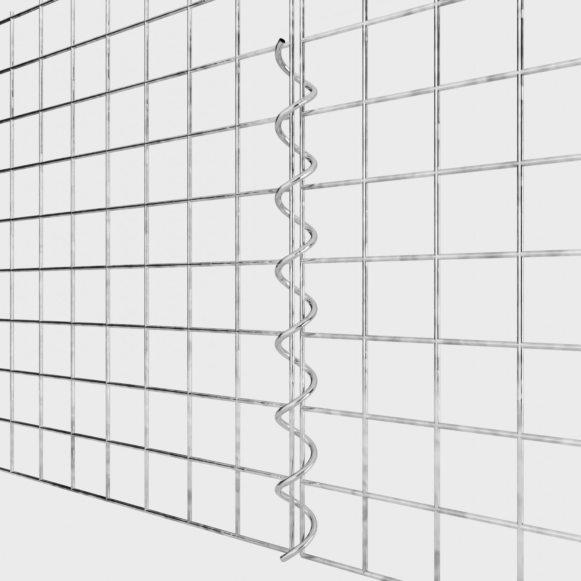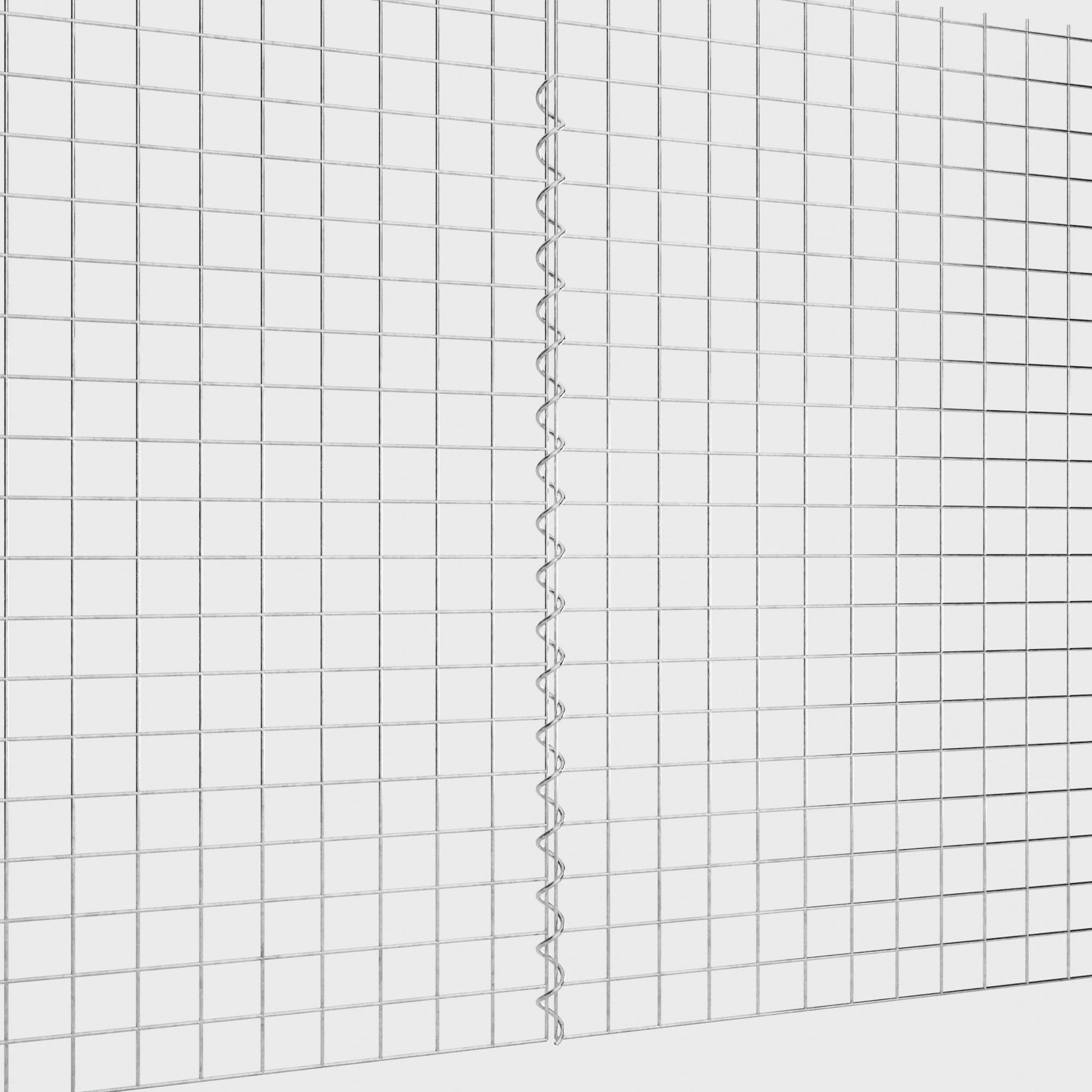 De spiralen zijn gemaakt van 4 mm dik gegalvaniseerd draad en worden eenvoudig in de randen van de gaaspanelen geschroefd. Dit zorgt voor een stabiele verbinding die zowel functioneel als visueel aantrekkelijk is. Dankzij de strakke schroefverbinding grijpen de gaasmatten precies in elkaar en vormen ze een sterke, duurzame eenheid - ideaal voor schanskorven, verhoogde bedden, pilaren of tuinmeubilair.