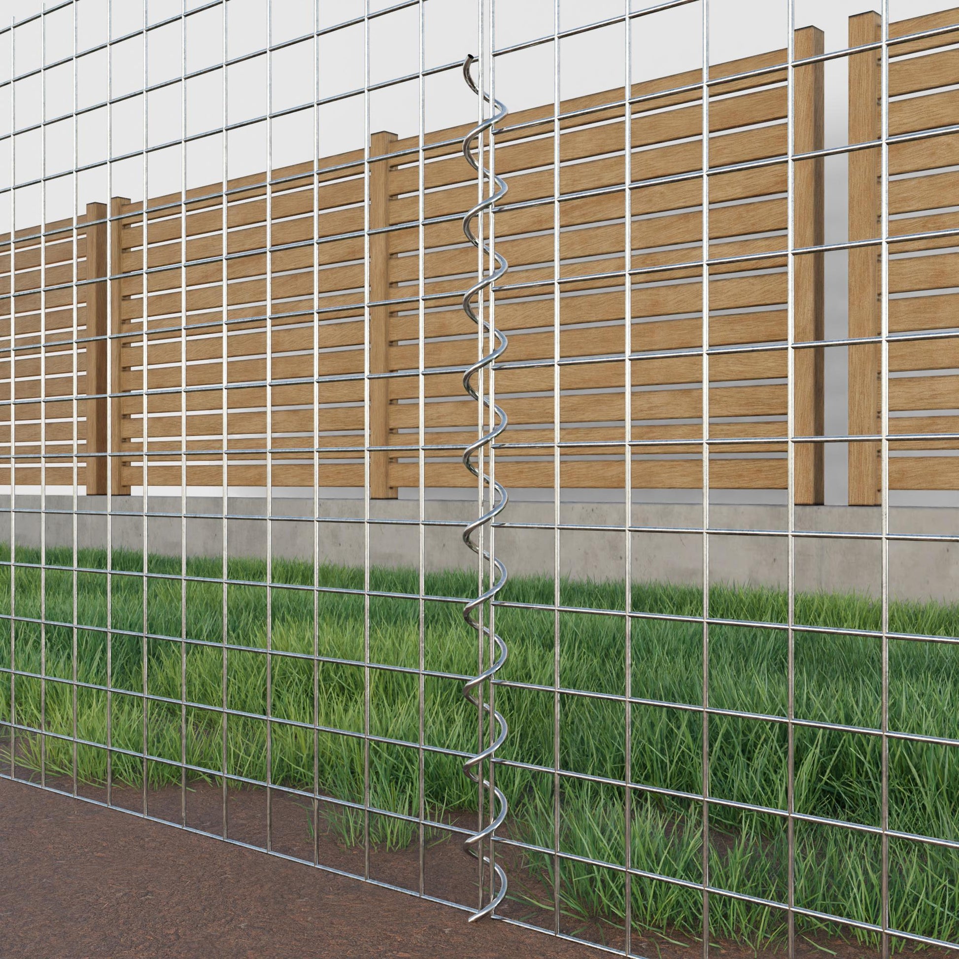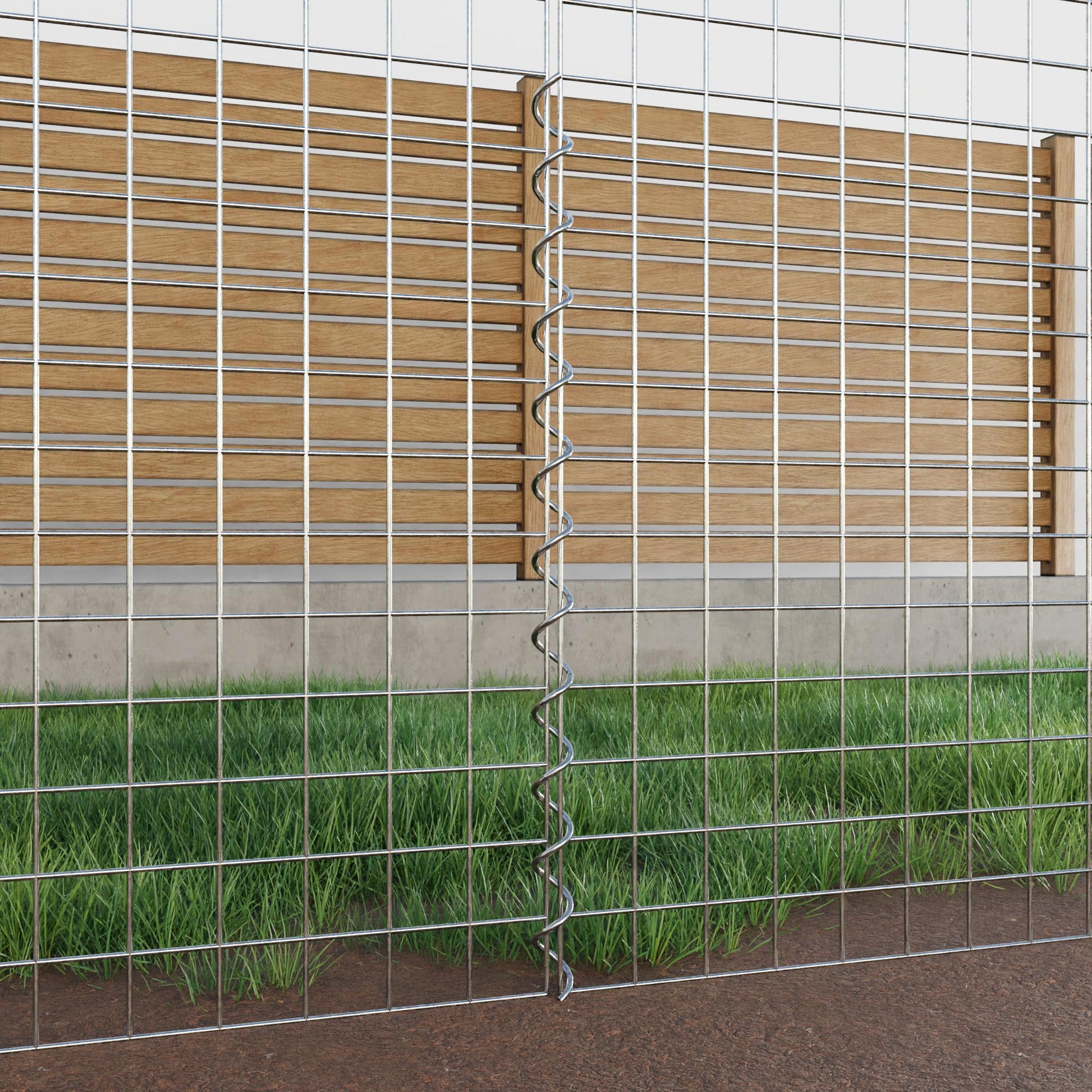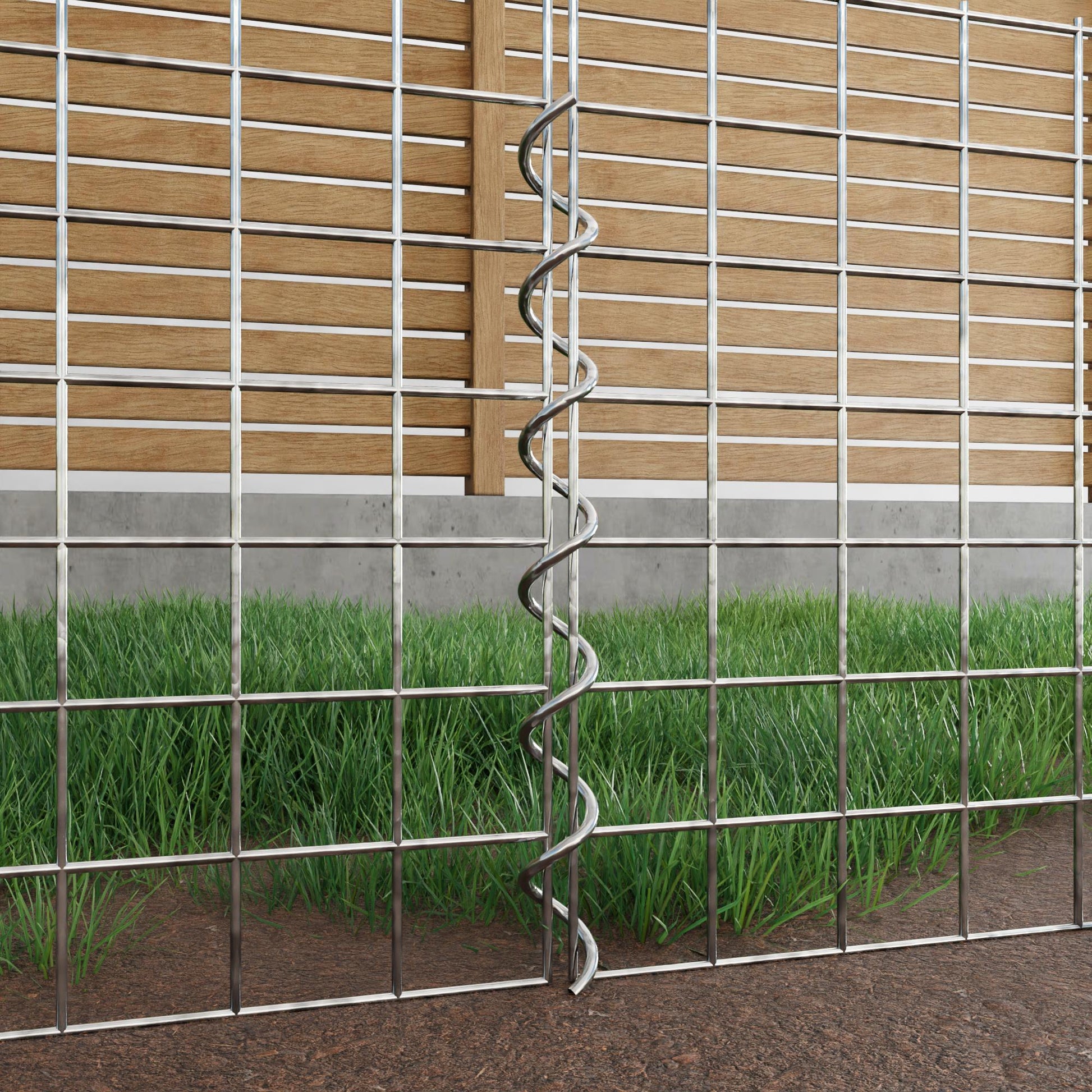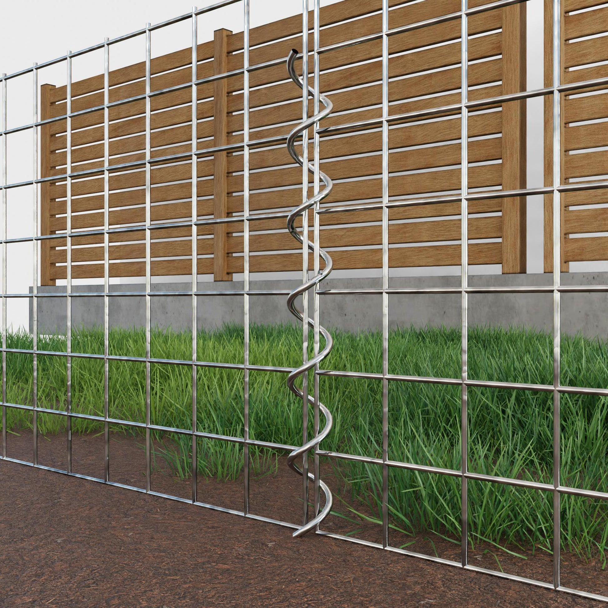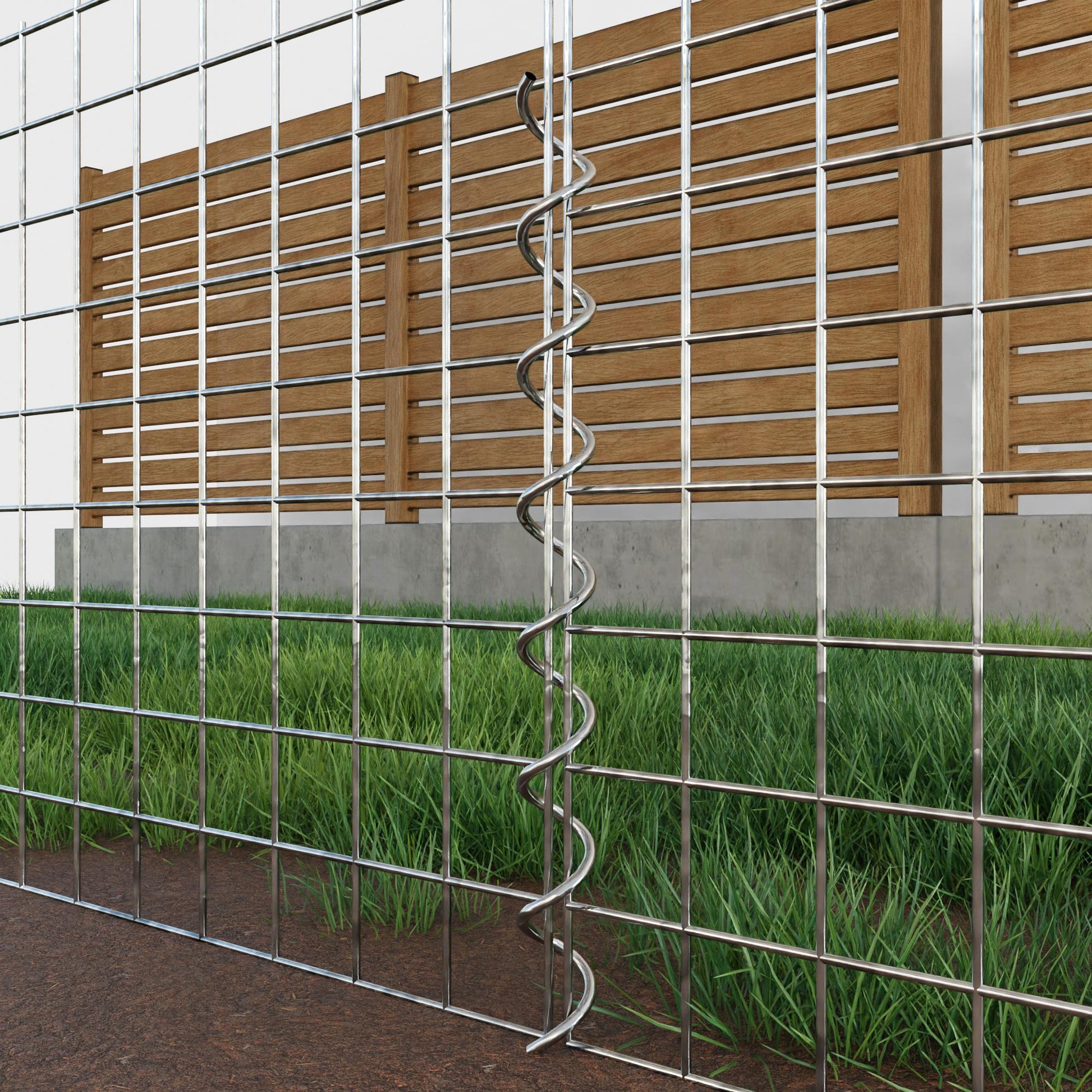De spiralen zijn gemaakt van 4 mm dik gegalvaniseerd draad en worden eenvoudig in de randen van de gaaspanelen geschroefd. Dit zorgt voor een stabiele verbinding die zowel functioneel als visueel aantrekkelijk is. Dankzij de strakke schroefverbinding grijpen de gaasmatten precies in elkaar en vormen ze een sterke, duurzame eenheid - ideaal voor schanskorven, verhoogde bedden, pilaren of tuinmeubilair.