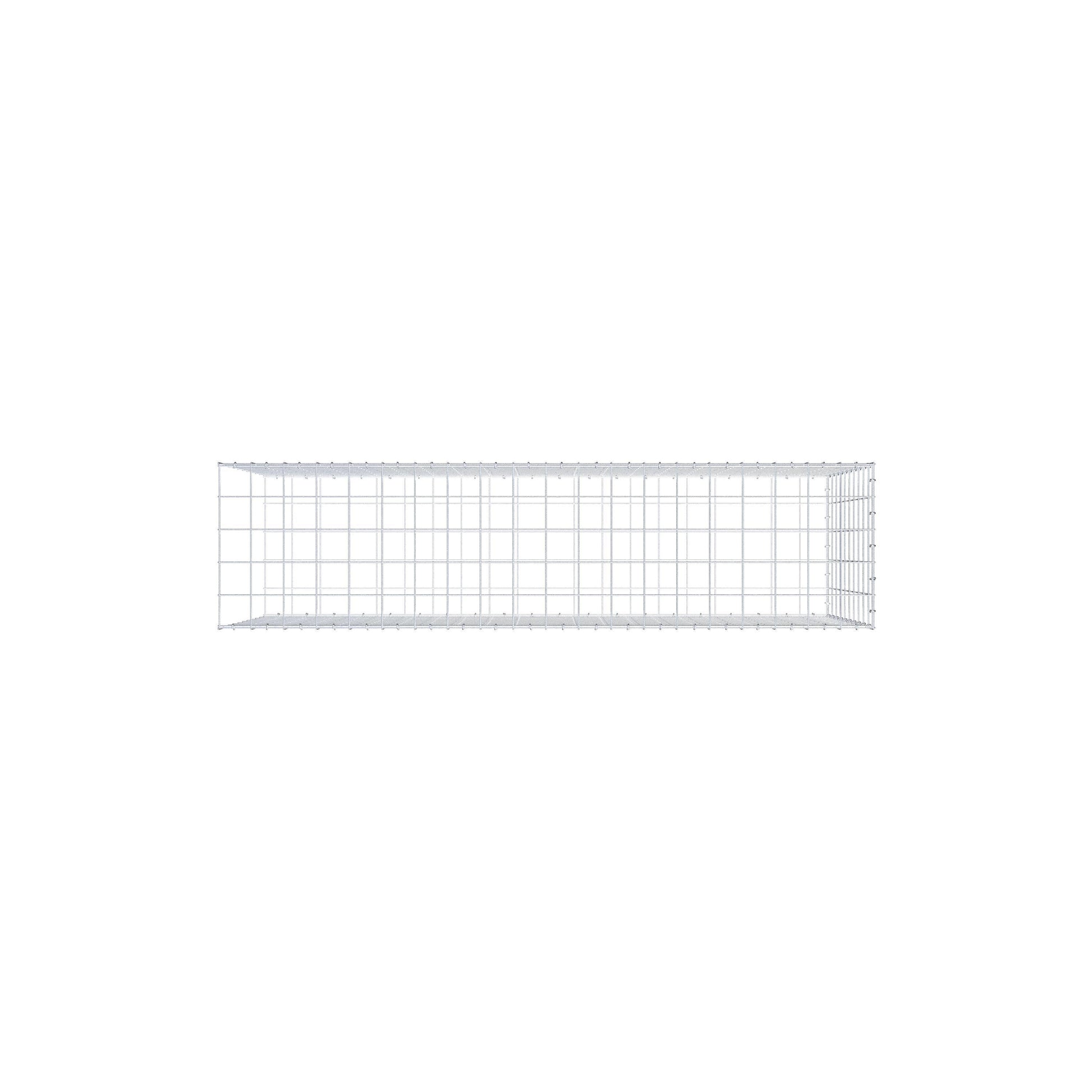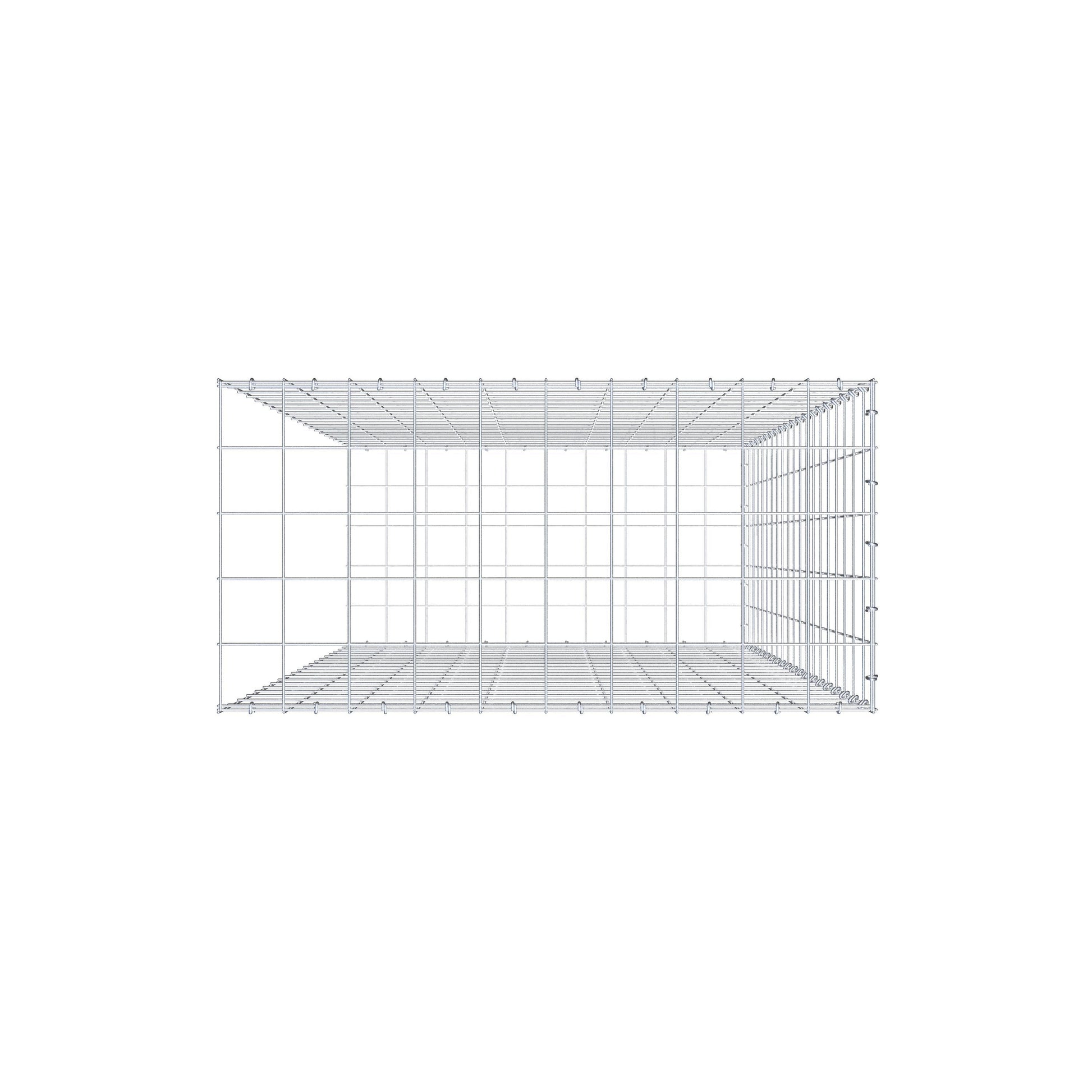 Bei dieser Gabione fehlt ein Stirngitter. Das ermöglicht Ihrer Gabione in die Länge zu wachsen.