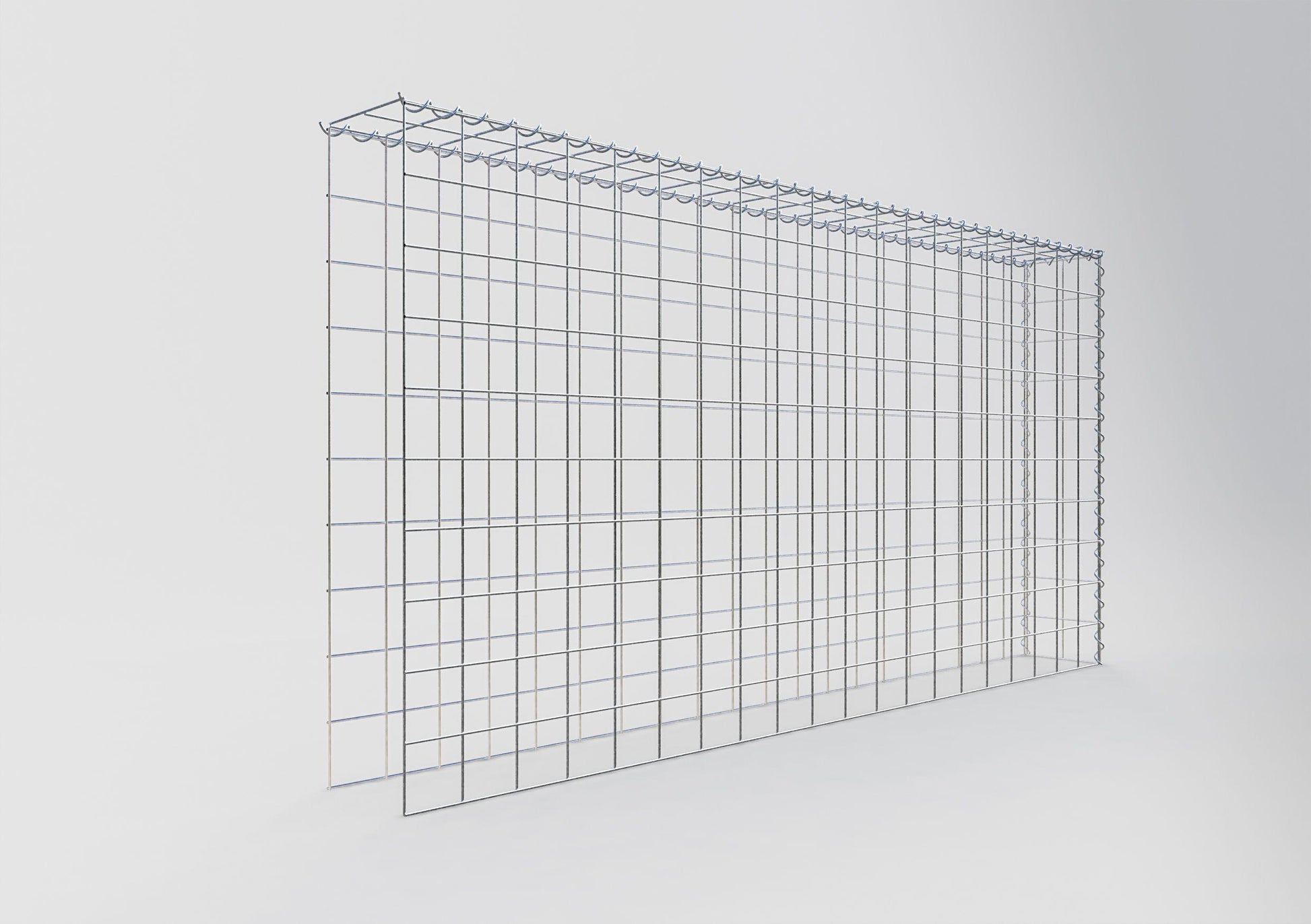 Este gavión no tiene rejilla frontal ni en la base. Esto permite que su gavión crezca tanto en longitud como en altura. Tenga en cuenta que el