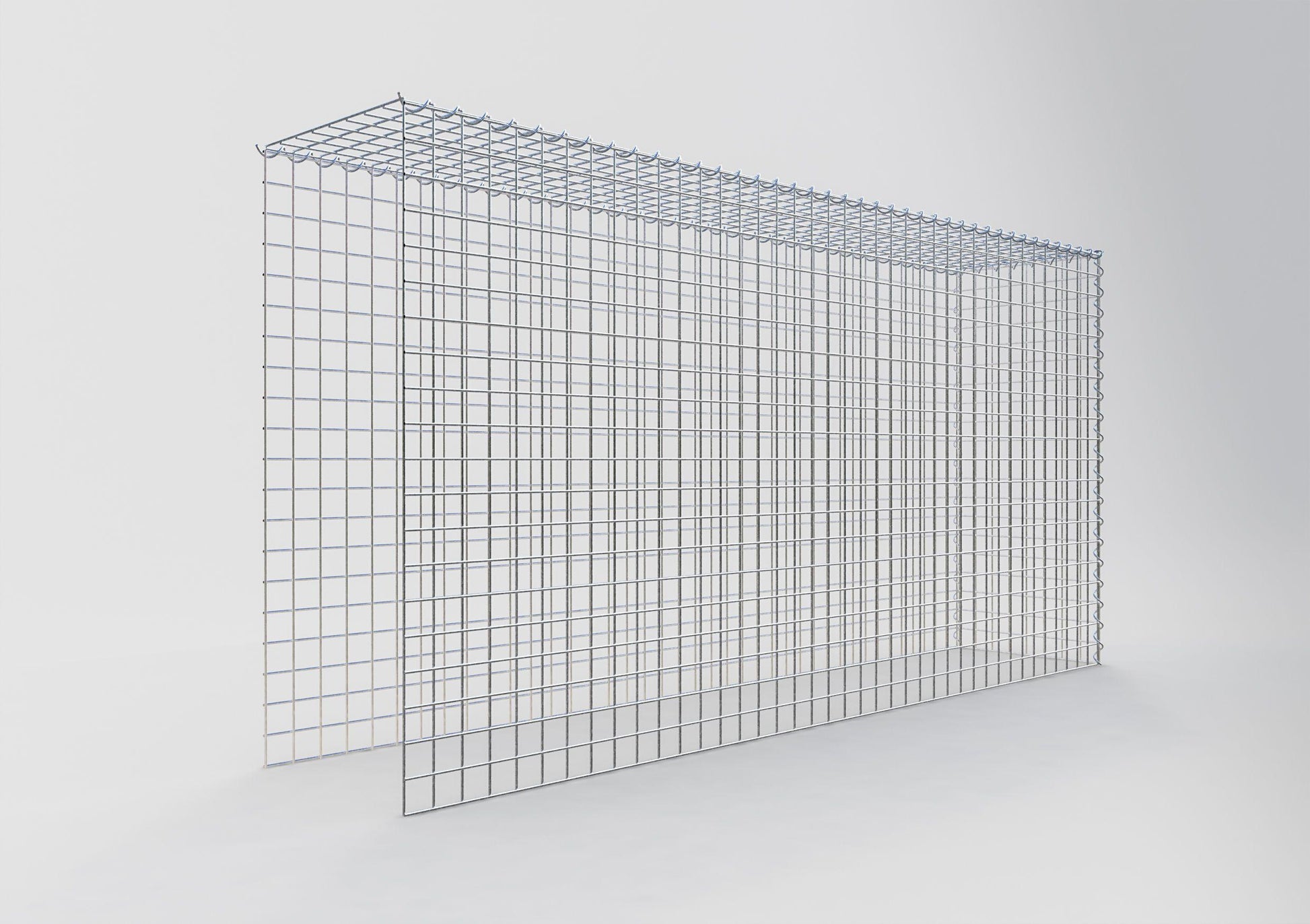 Este gavión no tiene rejilla frontal ni en la base. Esto permite que su gavión crezca tanto en longitud como en altura. Tenga en cuenta que el