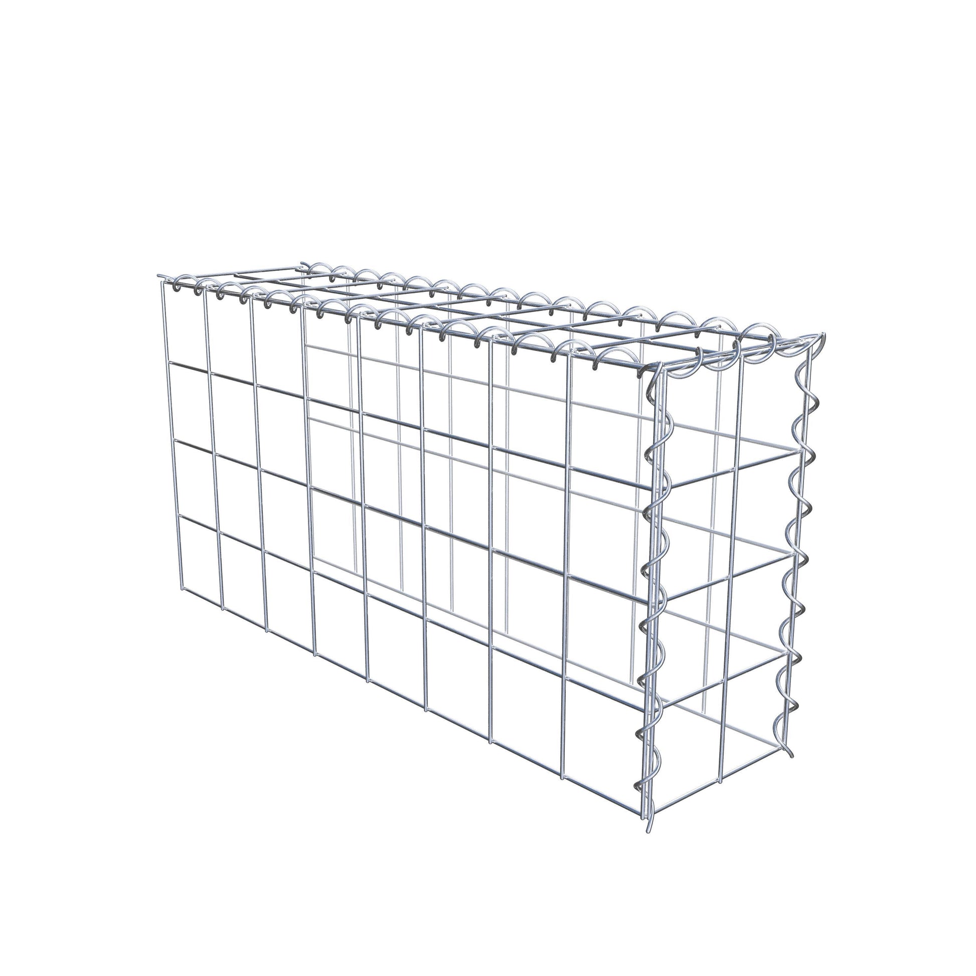 Este gavión no tiene rejilla frontal ni en la base. Esto permite que su gavión crezca tanto en longitud como en altura. Tenga en cuenta que el