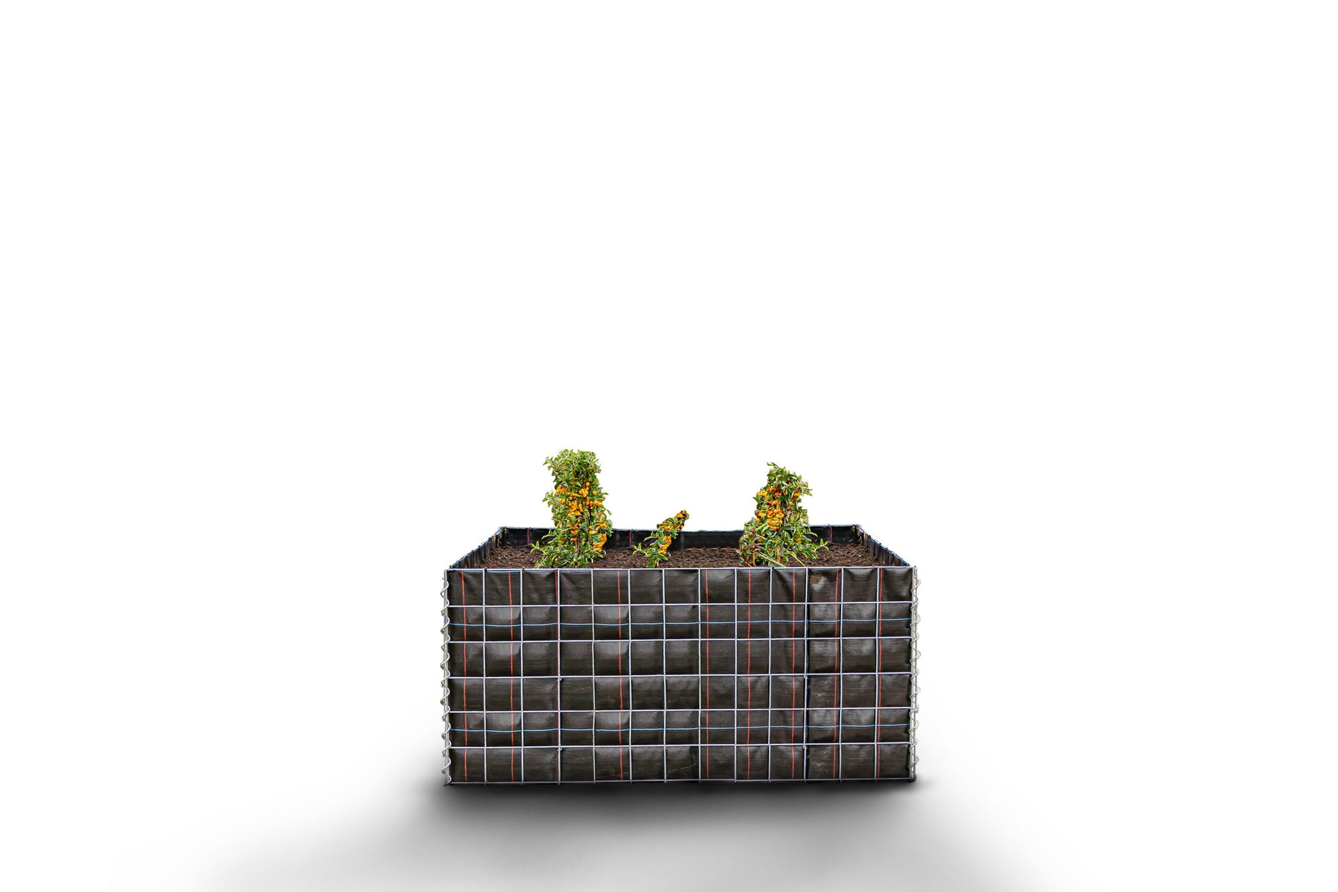 Este lecho elevado angular de gaviones ofrece una solución moderna y funcional para su jardín, sin relleno de piedra exterior. La estructura de rejilla está revestida por dentro con un robusto vellón que mantiene la tierra en su interior. El vellón permanece visible en el exterior, pero se puede personalizar u ocultar.