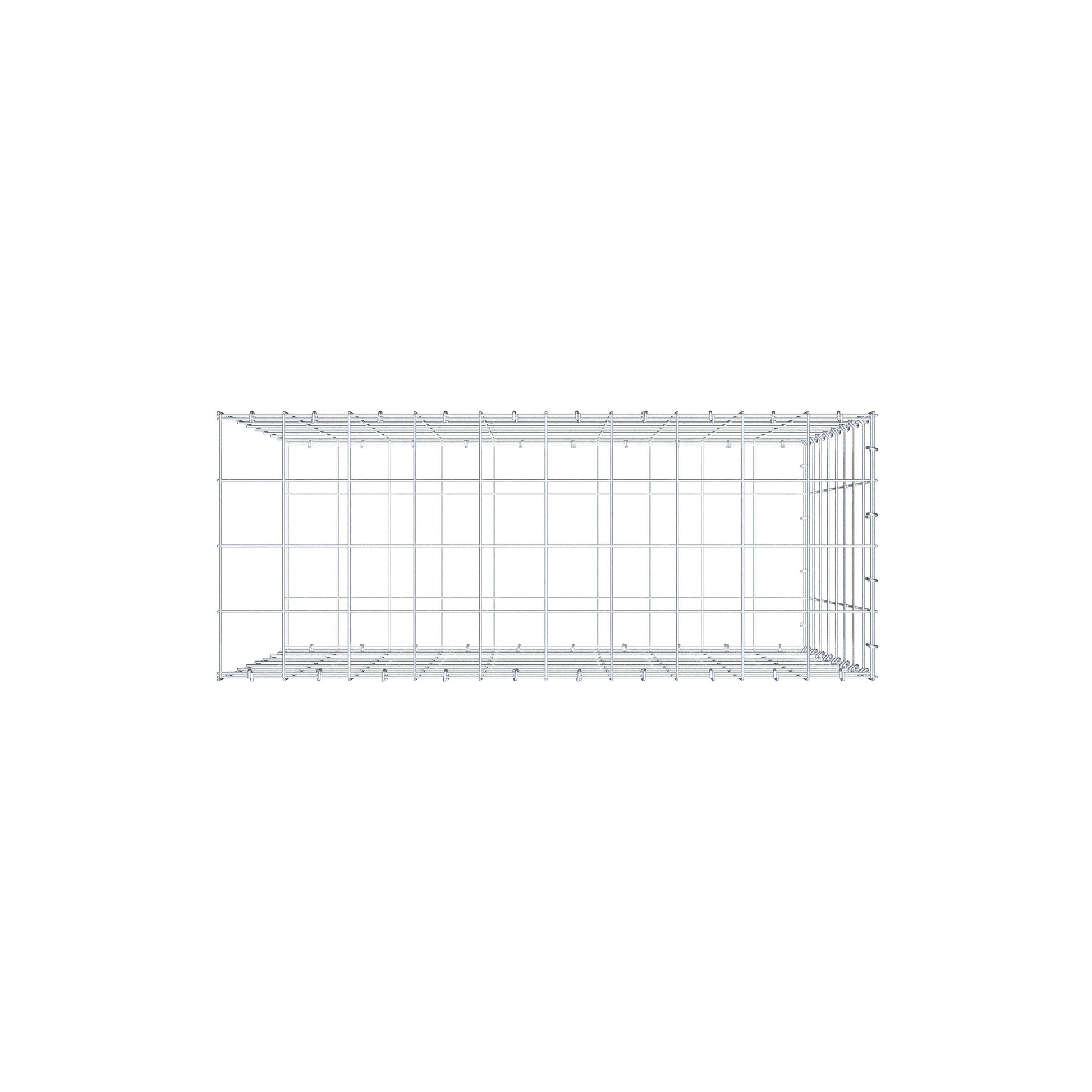 Este gabião não tem grade frontal. Isso permite que seu gabião cresça em comprimento.