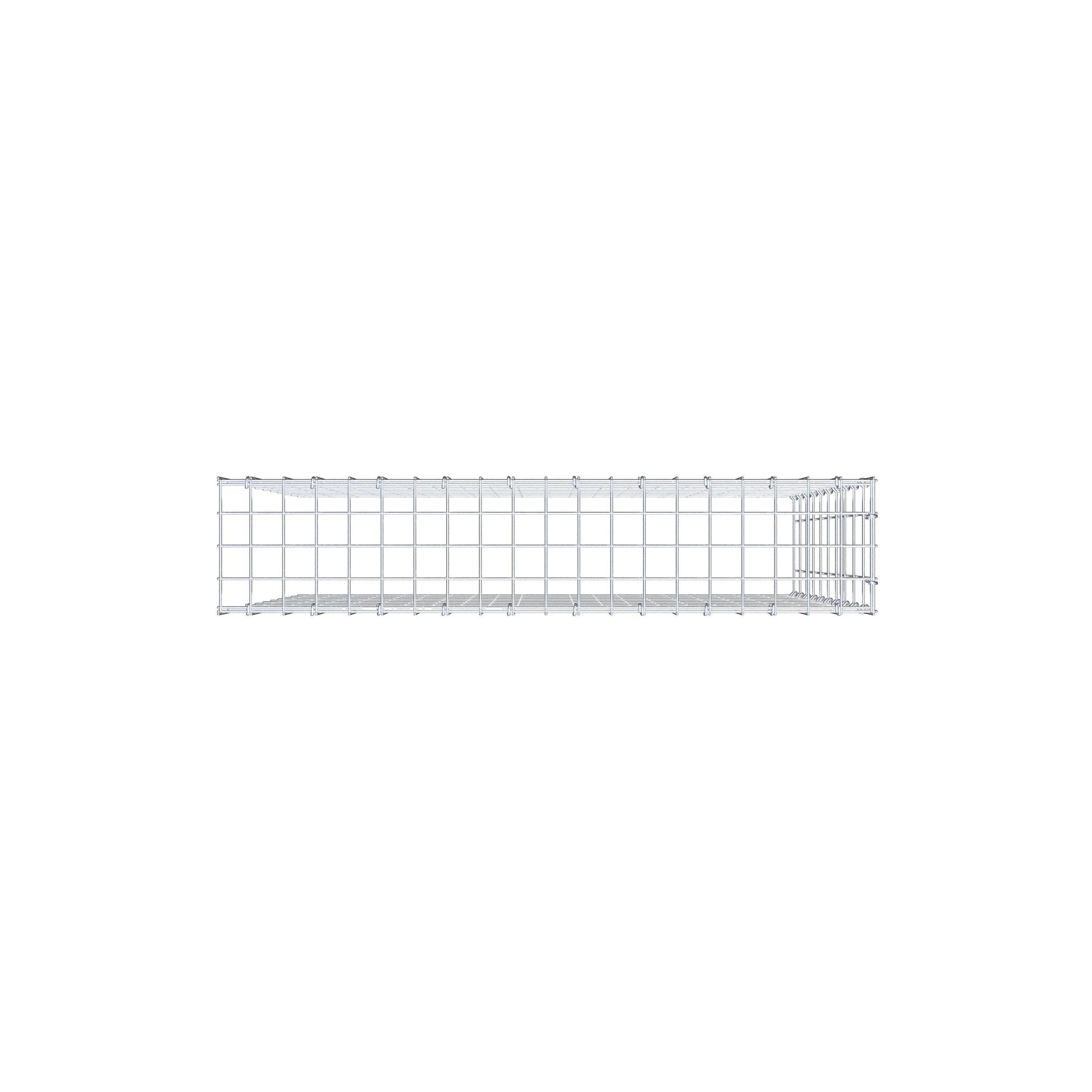 Este gabião não tem grade frontal e inferior. Isso permite que seu gabião cresça tanto em comprimento quanto em altura.