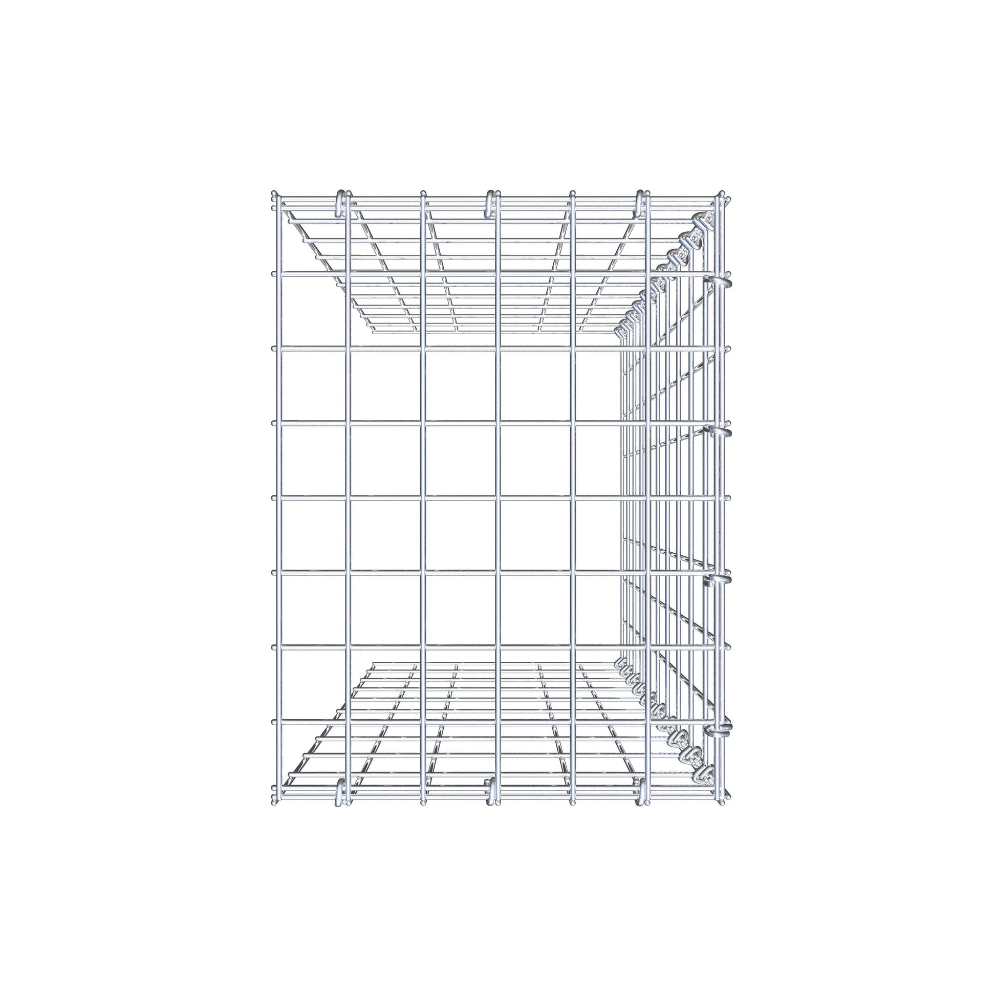Este gabião não tem grade frontal e inferior. Isso permite que seu gabião cresça tanto em comprimento quanto em altura.