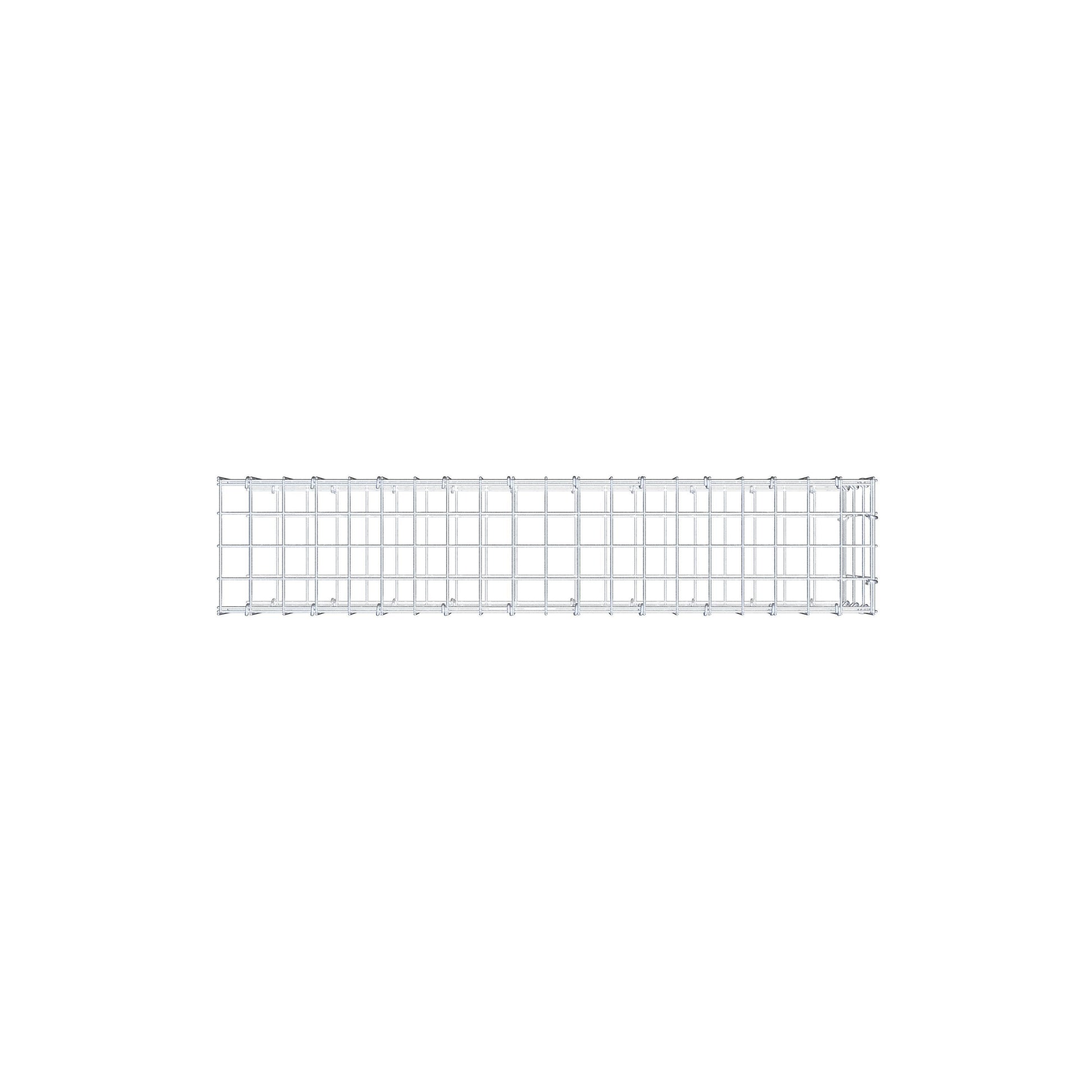 - Obs: inget separat frontgaller och inget fästelement på denna sida - anslutningen sker via fästelementet på den första gabionen.